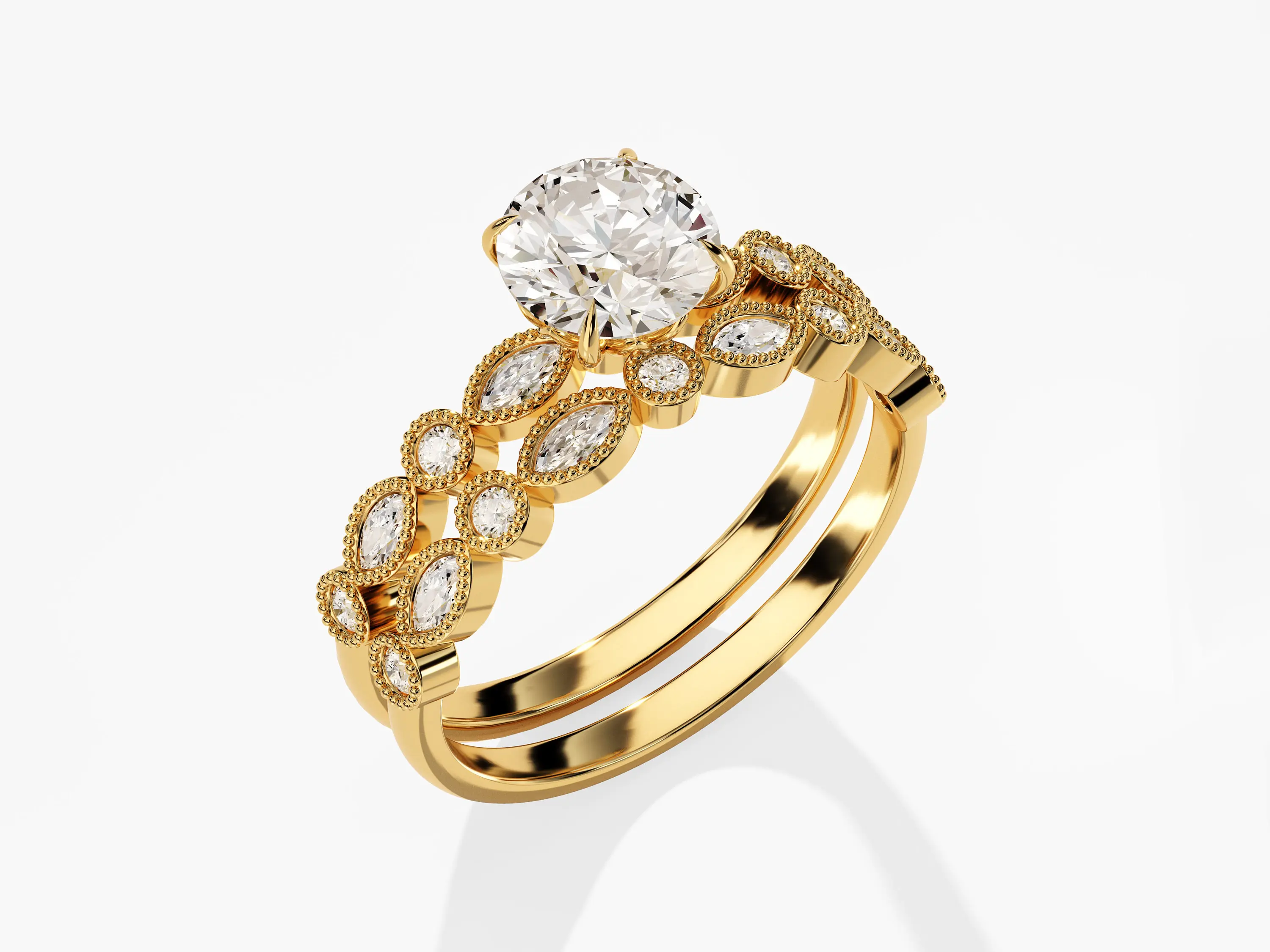 14k 18k Gold Diamond Bridal Set Vintage Wedding Band Set Unique Diamond Engagement Ring for Womens