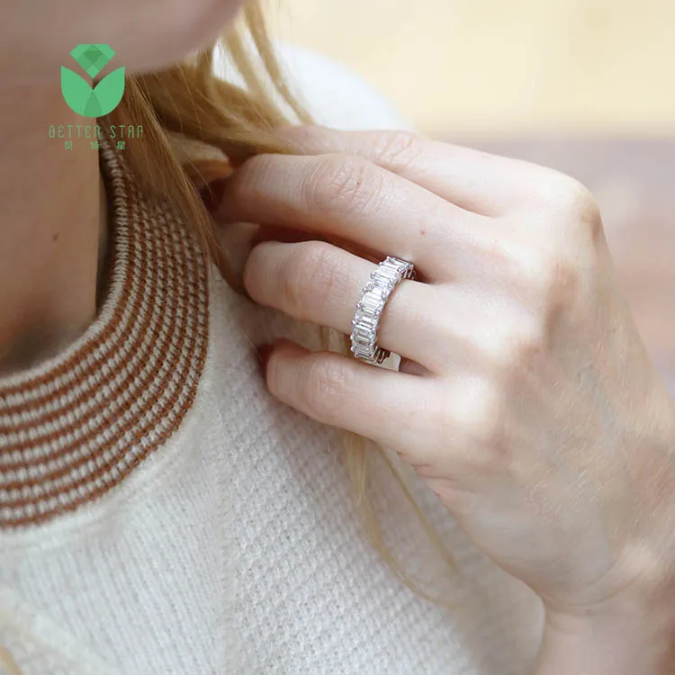 Customized 18k White Rose Gold Lab Diamond Engagement Ring Diamond Paving Emerald Shape Diamond Rings Wedding Band for Women
