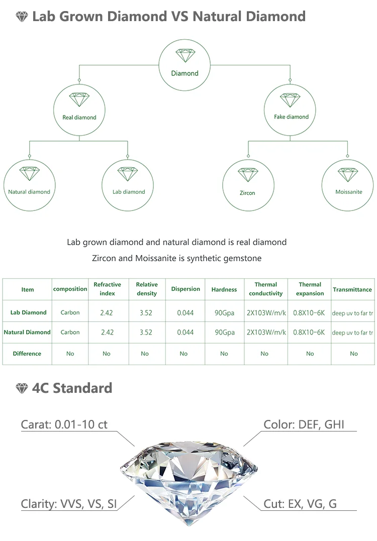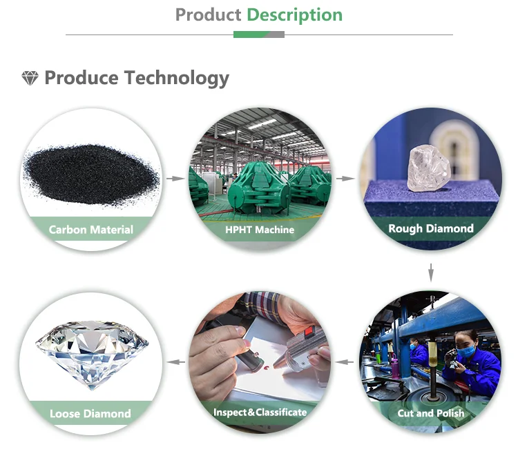 Lab grown diamond is generally produced by chemical vapor deposition (CVD) or high pressure high temperature (HPHT) methods that be similar to natural diamond in quality. It is an Eco-Friendly product which created through non-polluting technology & without environmental pollution.