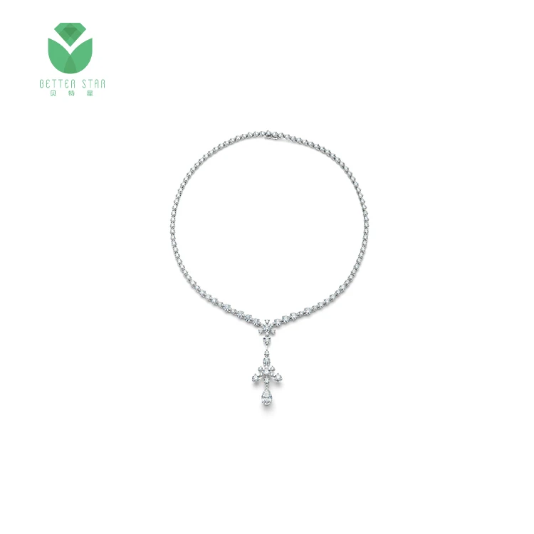 - Product Name : lab round diamond 18k white gold lab grown real diamond necklace chain